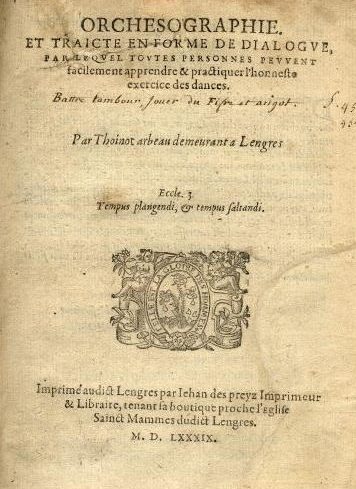 est un traité de danse publié en 1589 par Thoinot Arbeau, anagramme de Jehan Tabourot, chanoine de Langres.