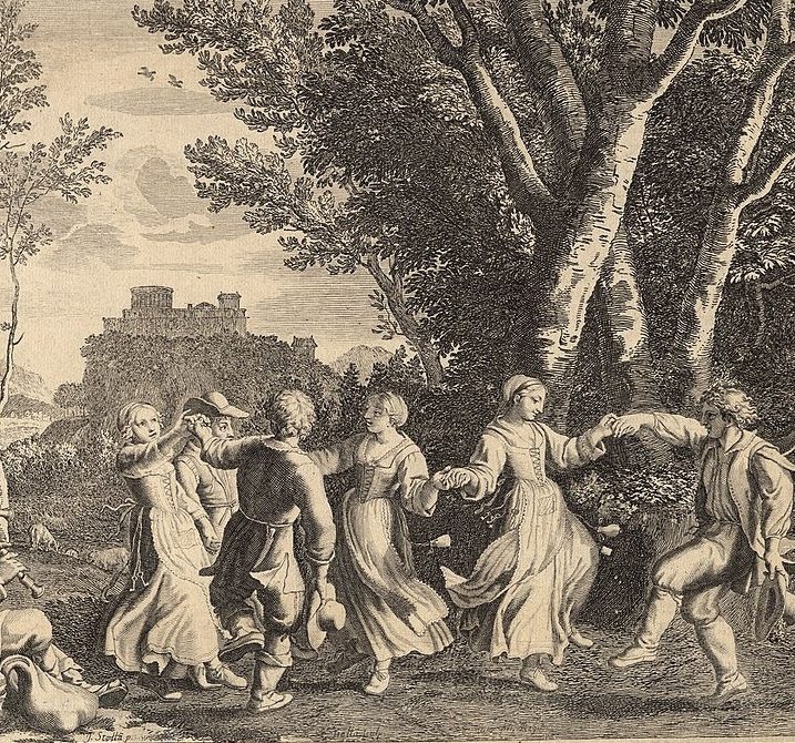 Dans les villages et les fêtes populaires, on dansait le Branle. C’est une danse de groupe où on se tient par la main pour former un cercle ou une chaîne. Les pas sont simples et répétitifs, rendant cette danse accessible à tous. Le Branle est l’ancêtre de nombreuses danses traditionnelles que l’on pratique encore aujourd’hui.
